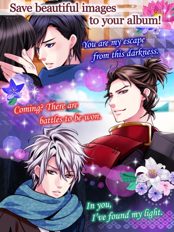Samurai Love Ballad: PARTY. Voltage, Inc. Simulation. Teen. 14,279. ... Your favorite samurai and ninja will come visit and even talk to you! Got something to share? Chat with other players about your experience. BATTLE. Choose a side and lead your clan to victory! Compete against other players and make allies to help you rise to the top.08/02/2016 · Samurai Love Ballad: PARTY Voltage inc. Historical drama, adventure, and romance in the arms of dashing samurai! Celebrating 3 Years thanks to all our wond…22/06/2021 · II. "Still, I was worried about you." (Chemistry +5) Story Mission: Love Route: Subdued Blossom Kimono (Item Score +80) - 8 Pearl. Fate Route: Subdue Blossom Ribbon (Item Score +40) - 5 Pearl/2500 Coin.27/12/2021 · Samurai Love Ballad: PARTY 4.1.0 for Android. 10.0 | 2 Reviews | 1 Posts. Voltage, Inc. Download APK (27.9 MB) Versions. Using ... Will you earn the heart of a samurai or a ninja? Many, many characters to choose from! DESIGN. Your heroine, your world. With a huge selection of fashion and items to suit your personal style, you can create scenes ...Samurai Love Ballad: PARTY. Voltage, Inc. Simulation. Ab 13 Jahren. 14.260. ... Your favorite samurai and ninja will come visit and even talk to you! Got something to share? Chat with other players about your experience. BATTLE. Choose a side and lead your clan to victory! Compete against other players and make allies to help you rise to the top.19/11/2018 · [Walkthrough] Samurai Love Ballad PARTY: Kyoichiro Narukami 0 0 Monday, November 19, 2018 Edit this post * Special thanks to Mary Ellen, JingerKookie, Kimberly Such!29/02/2016 · Seems like you get a leisurely read on the second half of many of the episodes, haha. :P. Story Mission. Love Route: Colonial Checkered Kimono (Item Score +100) - 12 Pearls. Fate Route: Colonial Rose Obi (Item Score +80) - 8 Pearls / 4,000 Coins. [Love: Suddenly Discovered] Get: Letter, CG. Myxprint • 5 years ago.15/04/2018 · [Walkthrough] Samurai Love Ballad PARTY: Fujibayashi Sakuya 0 0 Sunday, April 15, 2018 Edit this post * Special thanks to Kurohime, Biz Wade , …Relationship Chart Relationship Chart. Try Our Other Apps keyboard_arrow_right